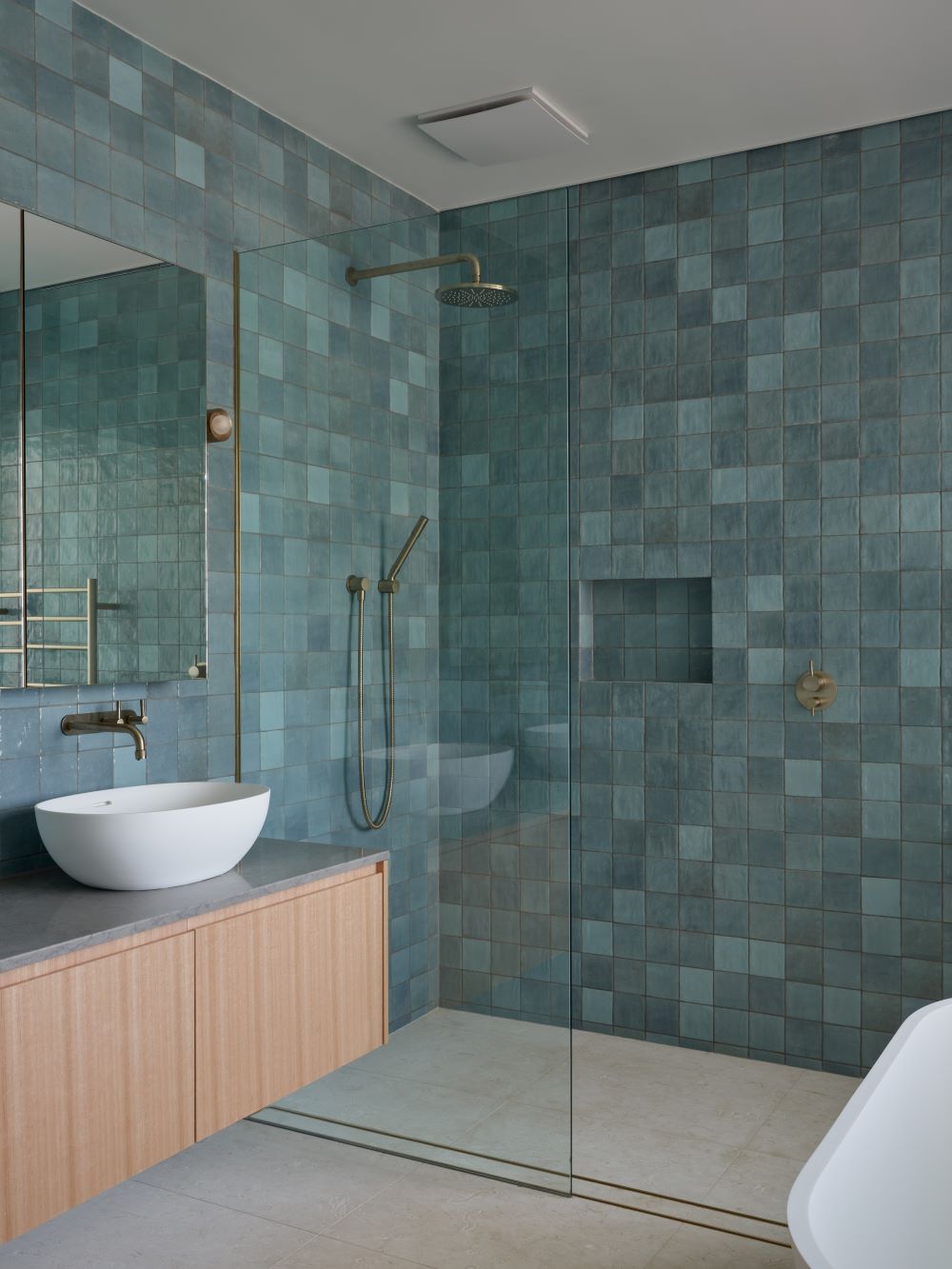 “Timber was key to getting the feel right,” de Vos explains. “The Tasmanian Oak floors, doors and mouldings introduce a softness that makes the spaces feel welcoming and lived-in, rather than overly polished. It ties everything together and strengthens that connection to nature.”