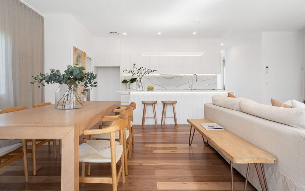 Finger-jointed (FJ) primed pine is the standard for most new residential builds – it’s dimensionally stable, takes paint cleanly, and arrives pre-primed to save site time. MDF mouldings offer a smoother machined profile at a lower cost, suited to painted finishes in dry interior areas, though they’re less forgiving on impact than timber. For renovation or heritage work where a clear or stained finish is required, solid hardwood profiles in Tasmanian Oak, Pacific Maple, or similar species deliver the natural grain and durability the job demands.